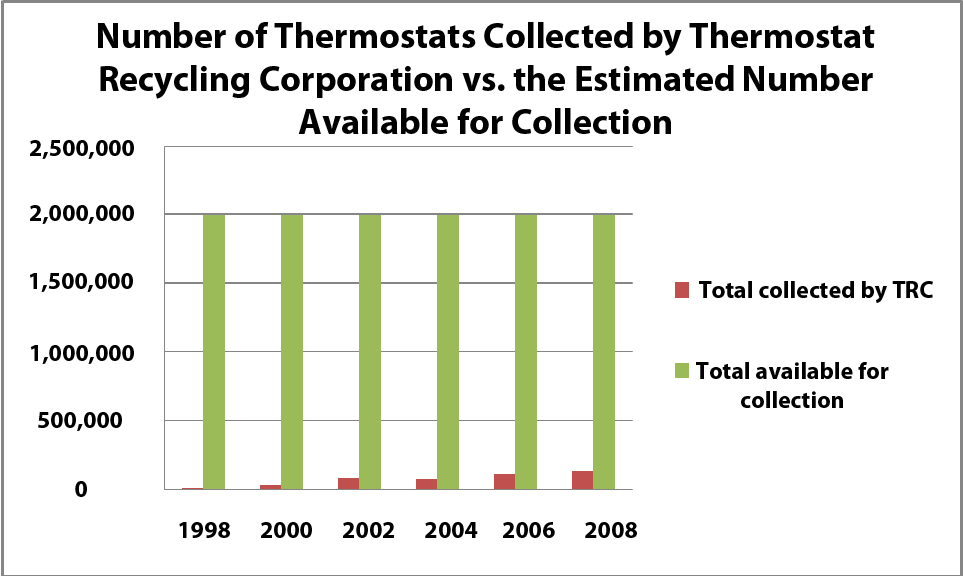 Number of Thermostats Collected by Thermostat Recycling Corporation vs. the Estimated Number Available for Collection
